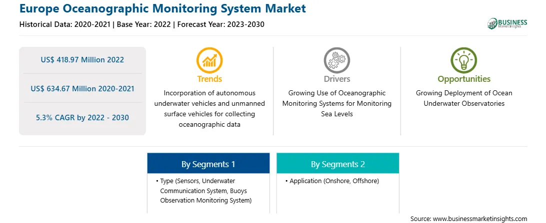 私たちの報告によると 南米および中米の海洋監視システム 市場, 市場規模は US$ 418.97 Million で 2022, 到達するように投影する US$ 634.67 Million による 2030. これは、およそ 5.3% 予測期間中。