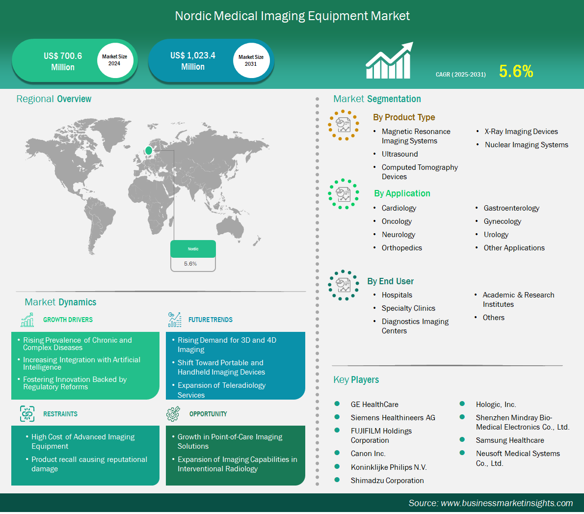 過去の期間、基準年、予測期間は、市場調査レポートによって若干異なる場合があります。ただし、北欧の医療画像機器市場レポートの場合: