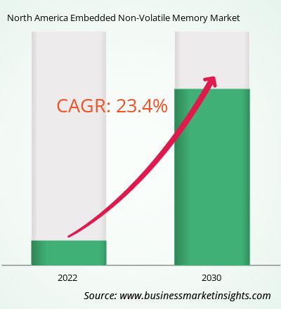 北米の組み込み不揮発性メモリ市場は、2022年に2億672万米ドルと評価され、2030年までに11億1,056万米ドルに達すると予想されています。また、2022年から2030年にかけて23.4%のCAGRで成長すると予測されています。
