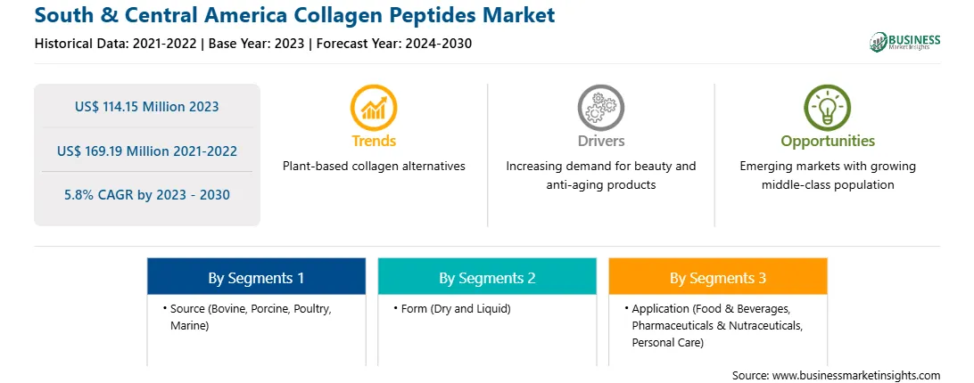 の 2030年までの中東およびアフリカのコラーゲンペプチド 市場 価値がある US$ 114.15 Million で 2023, 到達するように投影する US$ 169.19 Million による 2030.
