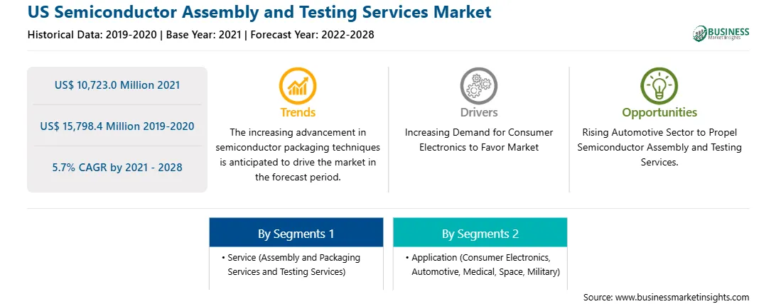 の 2028年までの北米半導体アセンブリおよびテストサービス 市場 価値がある US$ 10,723.0 Million で 2021, 到達するように投影する US$ 15,798.4 Million による 2028.